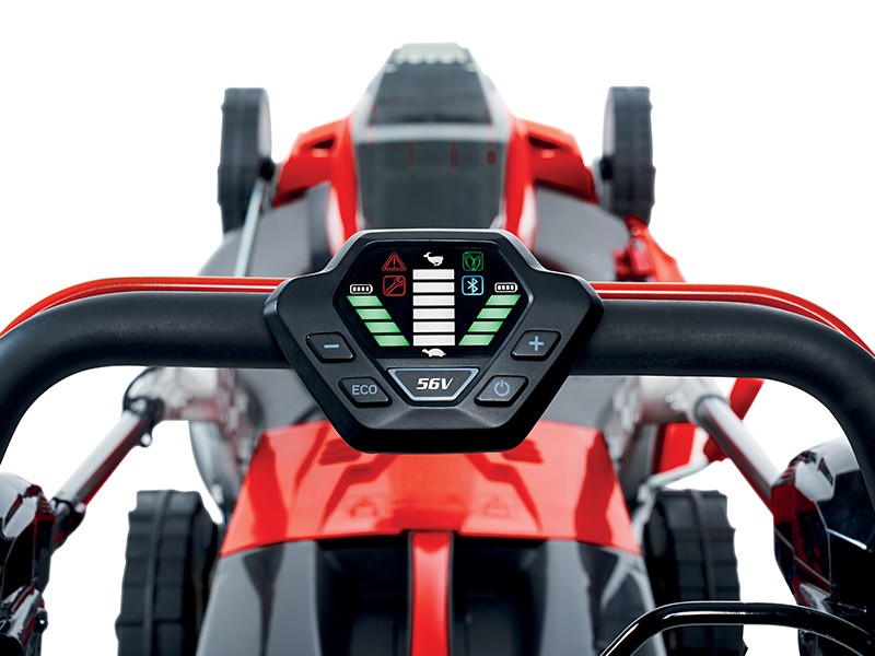 La tecnologia ECO Mode ottimizza i consumi e prolunga la durata della batteria, mentre il display con comandi intuitivi consente un controllo semplice e immediato. Il manubrio regolabile e richiudibile permette di riporre il rasaerba in posizione verticale per ridurre l’ingombro.